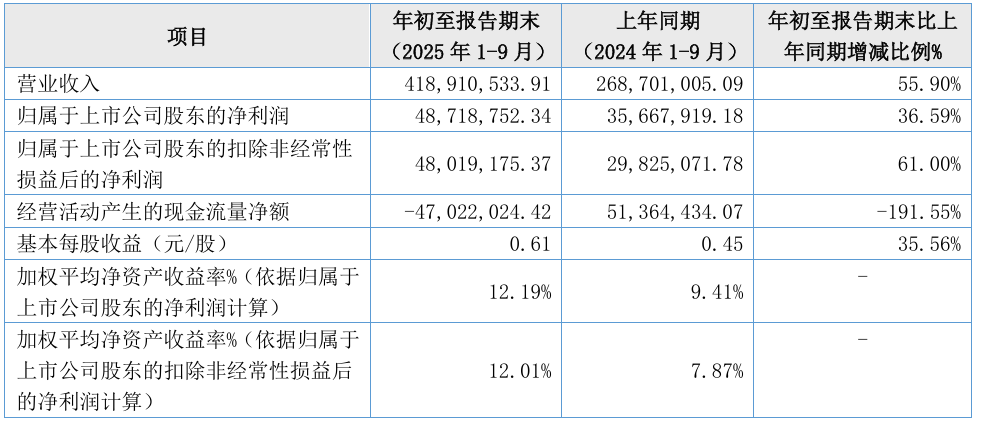雅葆轩公告称,公司前三季度经营收入为4.19亿元,同比增加55.90%;归母纯利润是4871.88万元,同比增加36.59%;扣非归母纯利润是4801.92万元,同比增加61.00%;根本每股盈余0.61元。